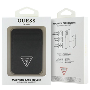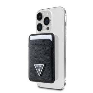 Guess Magnetic Wallet Cardslot MagSafe GRAINED PU Lather Triangle Metal Logo Black