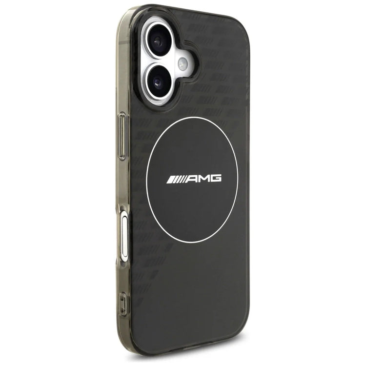 The case from the AMG Double Layer Transparent Smocked MagSafe collection is the perfect choice for automotive enthusiasts. The classic black of the cover has been enhanced with diamond patterns that catch the eye and add a sporty character to the case. The look is completed with a large, contrasting white AMG logo, emphasizing the authenticity of the collection and the luxurious character of the product.