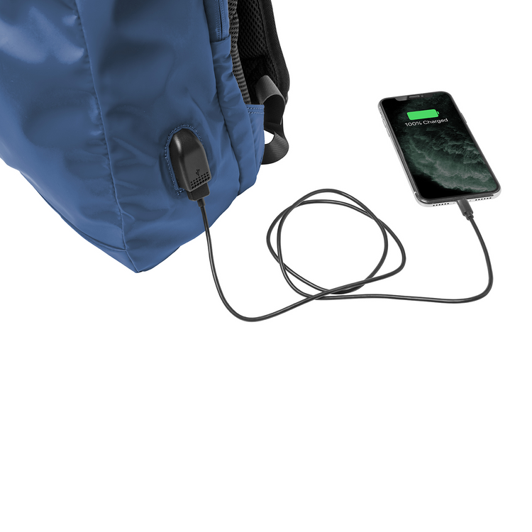 The backpack is equipped with a USB port with integrated cable that allows you to charge your smartphone even when you are on the go.