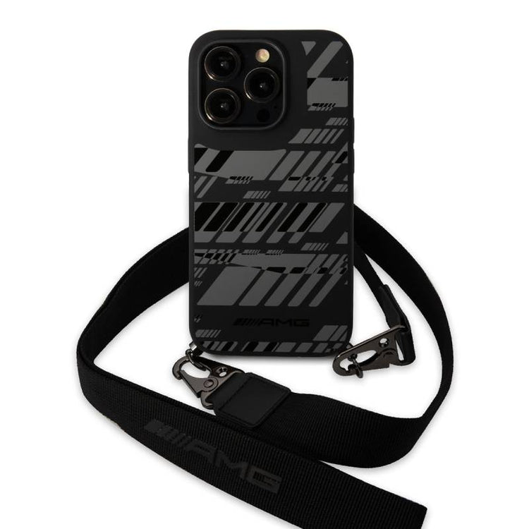AMG AMHCP14L2SSDK iPhone 14 Pro Case Liquid Silicone Strap Graphic Design Cover with Phone Strap