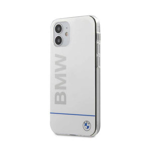 BMW BMHCP12SPCUBWH iPhone 12 mini Shiny Hard Case Blue Horizontal Line & Printed Logo Compatible