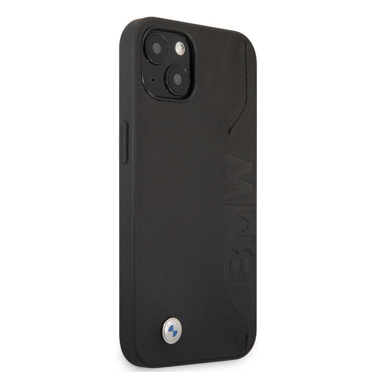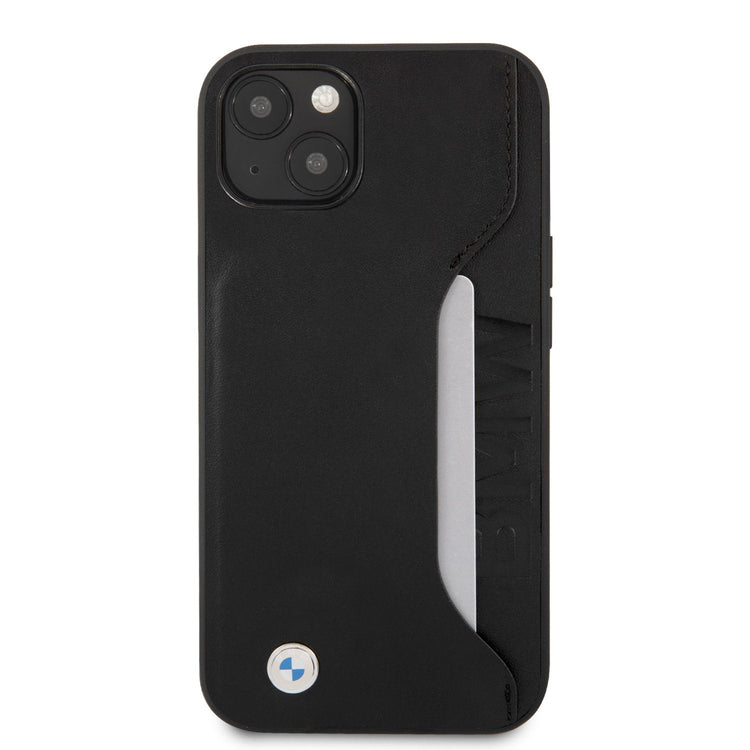 BMW BMHCP13SRCSWK iPhone 13 mini black hardcase Real Leather Wordmark - Cardslot