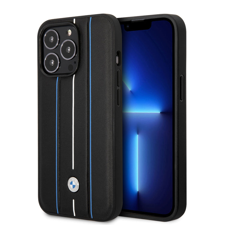 BMW BMHCP14L22RVSK iPhone 14 Pro black Leather Signature collection case with Hot Stamp Line