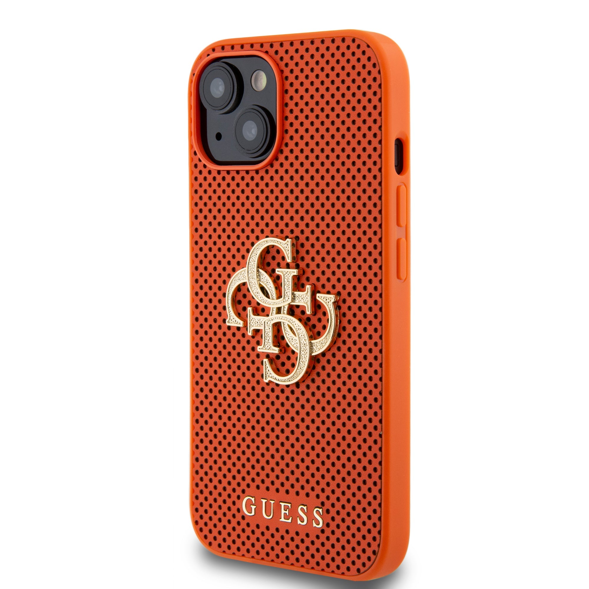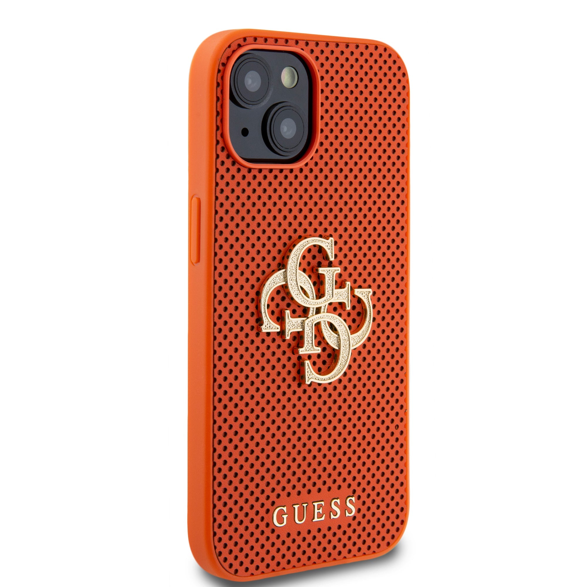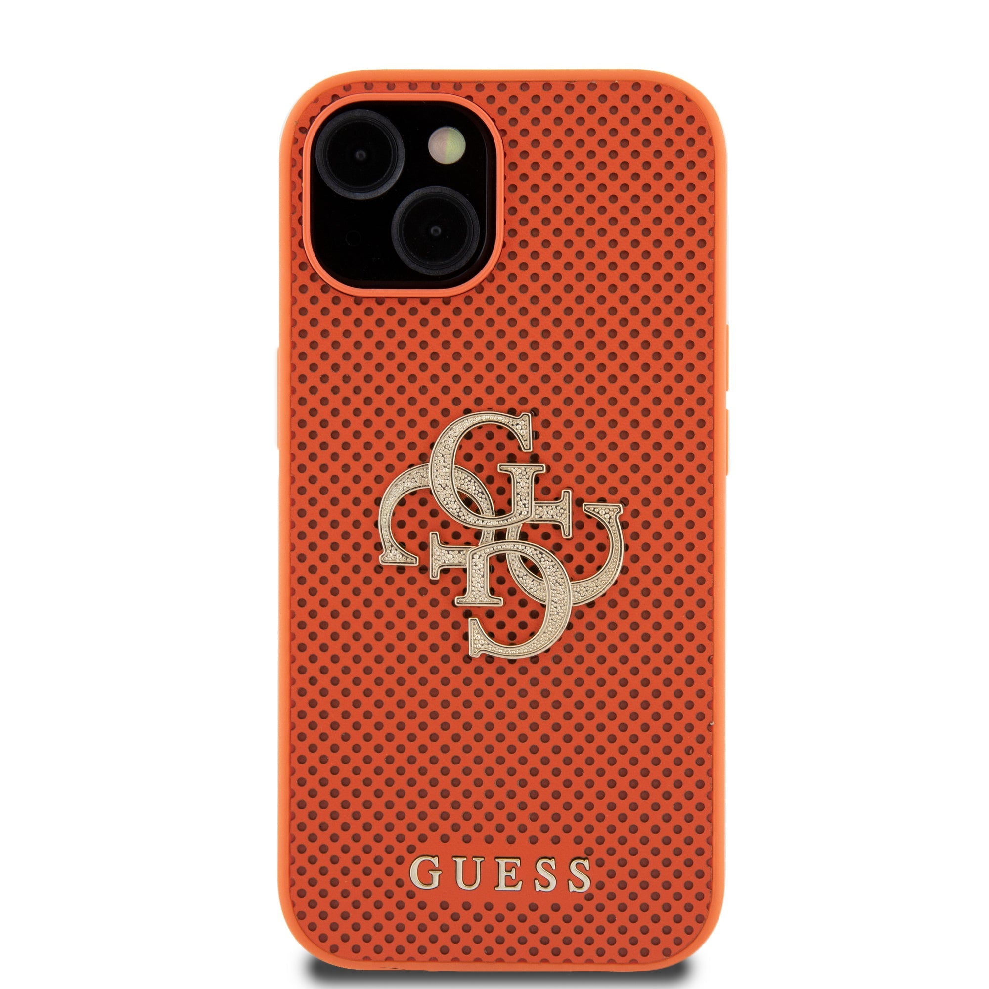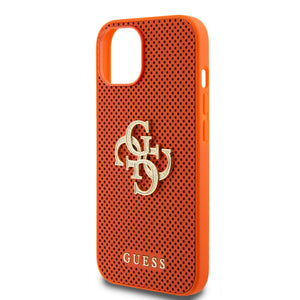 Guess Perforated PU Leather Hardcase 4G with Glitter metal Logo Orange iPhone 15 / 14 / 13