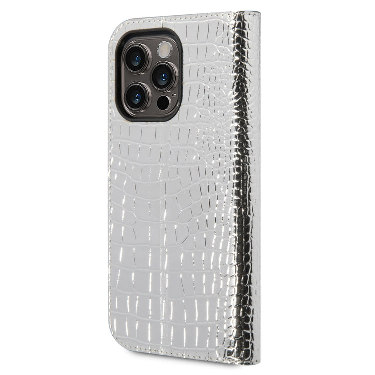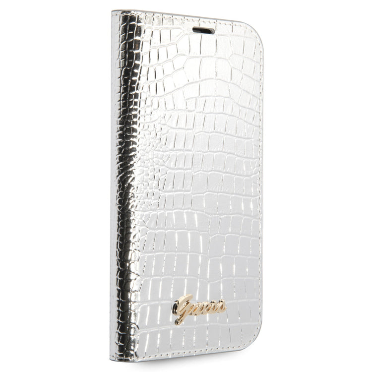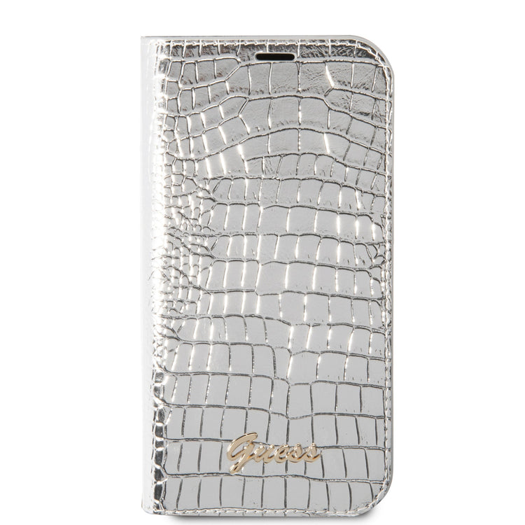 GUESS Apple iPhone 14 / 15 / 13 Book Silver Croco Case