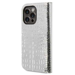 GUESS Apple iPhone 14 Plus BookCase Silver Croco