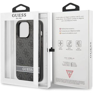 Guess GUHCP13LP4SNK Guess PU 4G Stripe Back Cover for iPhone 13 Pro Black