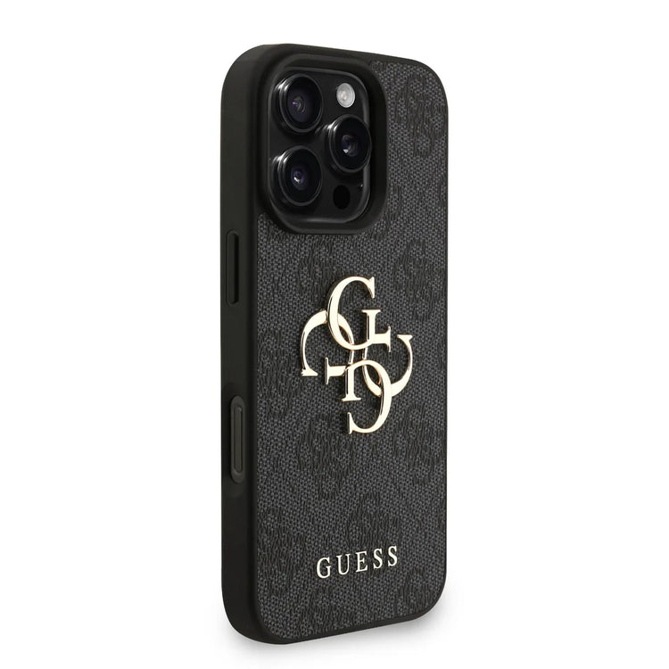 The premium Guess PU 4G Metal Logo Strap Back Case features an elegant, distinctive 4G pattern, complemented by the GUESS logo.