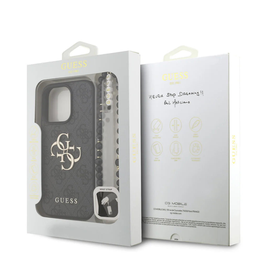 Guess GUHCP16LP4GMGSK PU W/ Strap 4G metal logo band case iPhone 16 Pro black