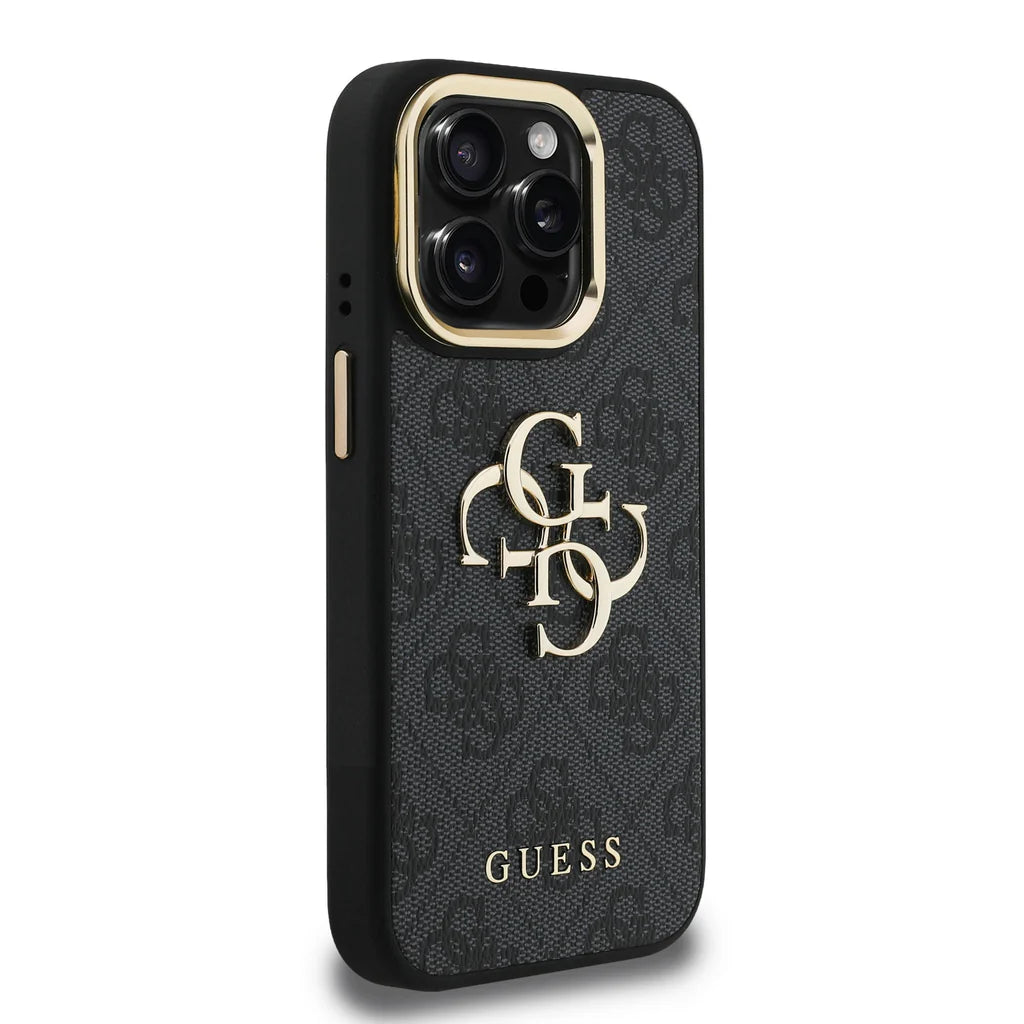 The premium Guess PU 4G Metal Logo Strap Back Case features an elegant, distinctive 4G pattern, complemented by the GUESS logo.