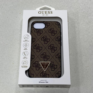 Guess GUHCPSE4P4TDPW iPhone 16e Brown MagSafe hardcase PU Leather Triangle Strass