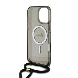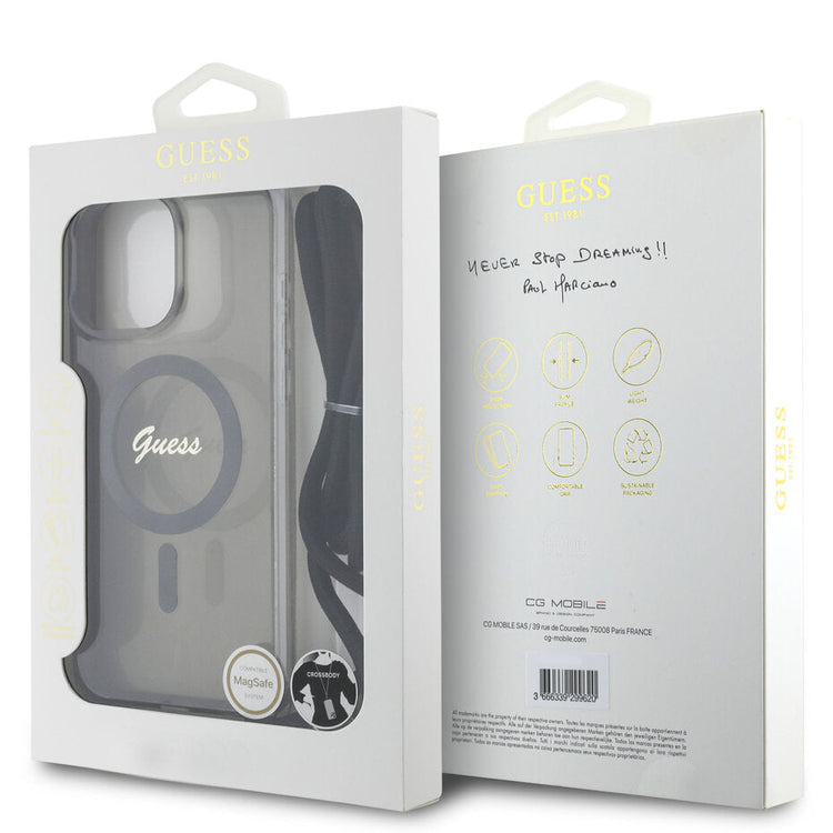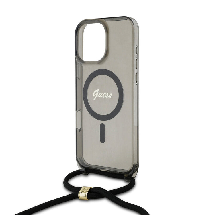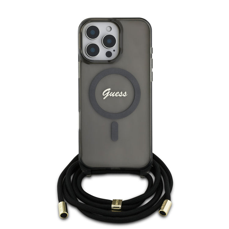 Guess GUHMP16XHCTSGNSK iPhone 16 Pro Max black hardcase Crossbody Cord Script MagSafe