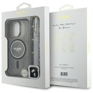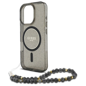 Guess GUHMP16XHGCRELSK iPhone 16 Pro Max Black hardcase IML Glitter With Pearl Strap MagSafe