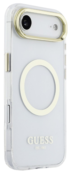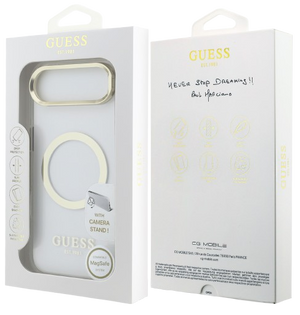 Guess GUHMP17MHTRMSFD Gold Outline Stand Camera Frame Magsafe Case for iPhone 17 Air Transparant