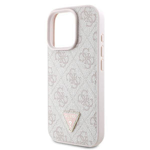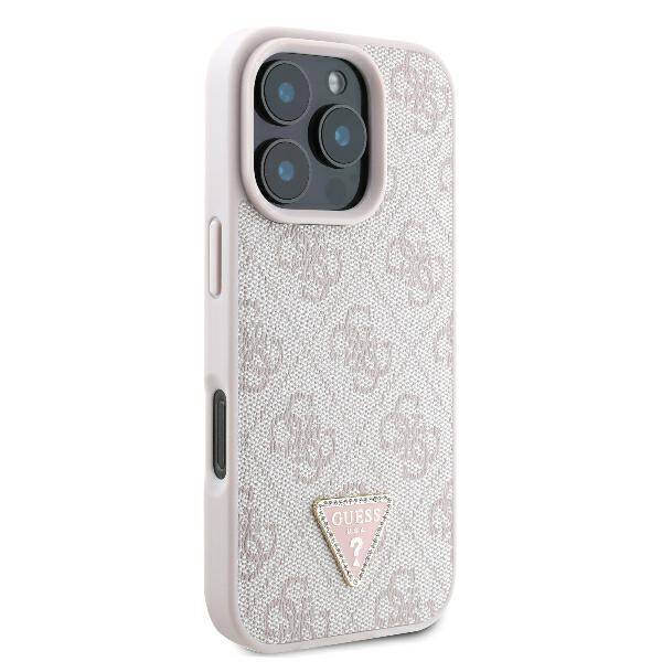 Guess Hardcase PU Leather 4G Triangle Strass Pink iPhone 16 Pro Max
