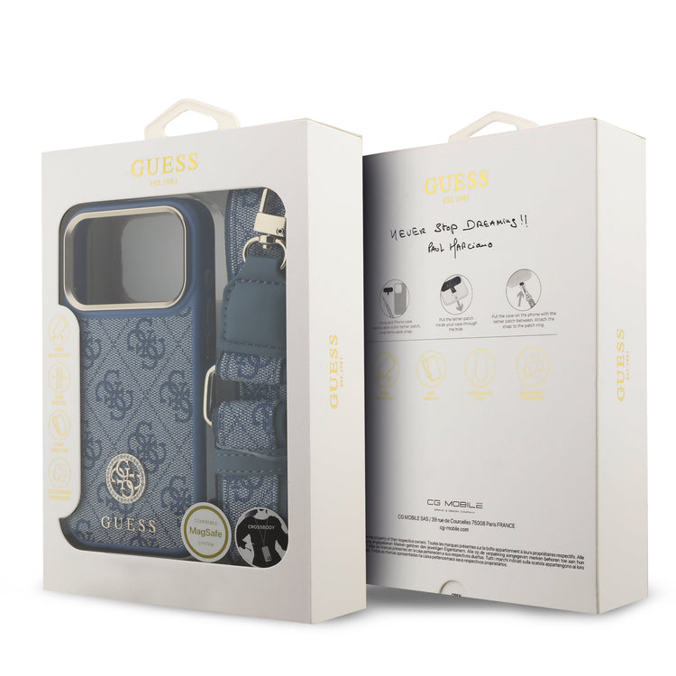 GUESS GUHMP17LP4G4DCSB HardCase MagSafe 4G PU W/ Strass Logo & Big Strap Metal Buttons Blue iPhone 17 Pro