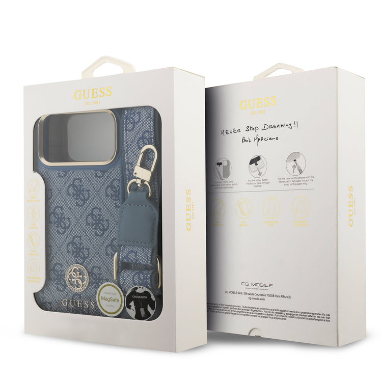 GUESS GUHMP17XP4G4DCSB HardCase MagSafe 4G PU W/ Strass Logo & Big Strap Metal Buttons Blue iPhone 17 Pro Max