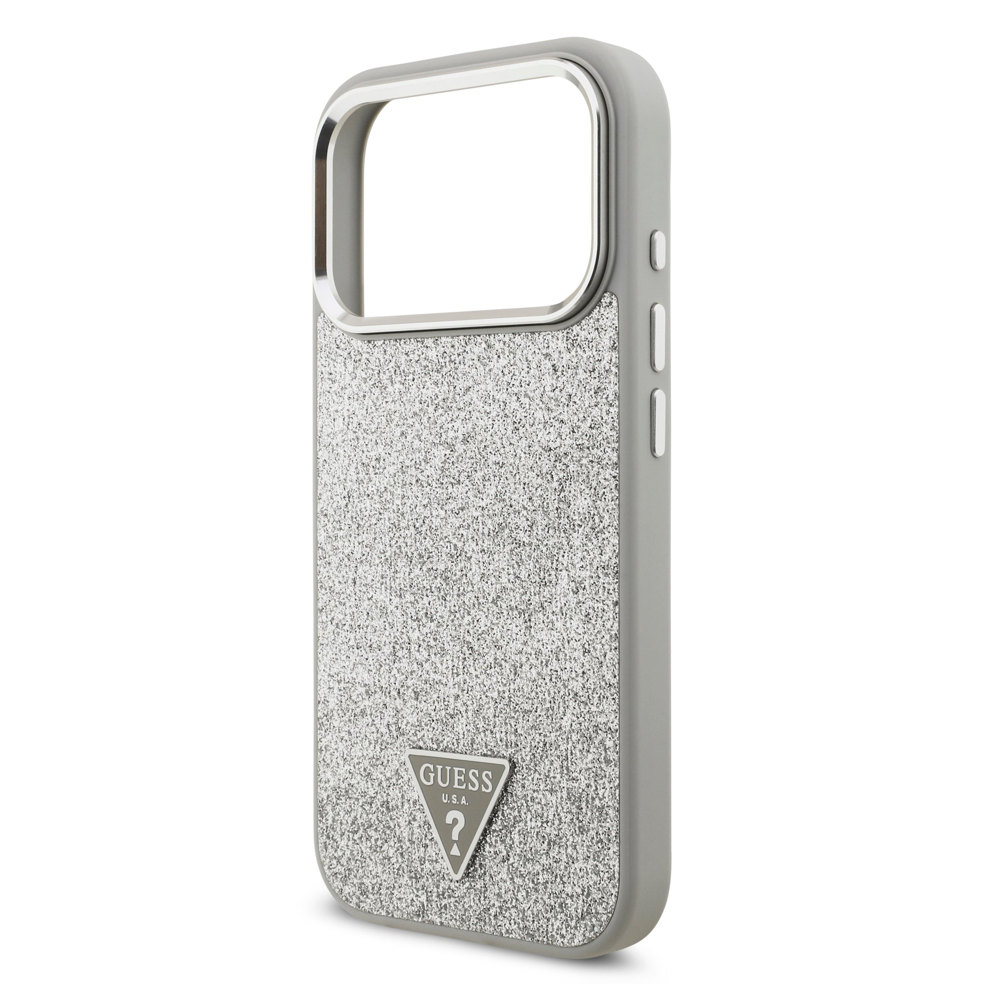 GUESS GUHMP17XPFGTSCMS Hardcase MagSafe PU Glitter W/ Triangle Logo SILVER iPhone 17 Pro Max