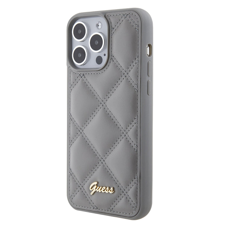GUESS GUHCP15LPSQSQSG PU LEATHER HC QUILTED EDITION METAL LOGO GREY iPhone 15 PRO