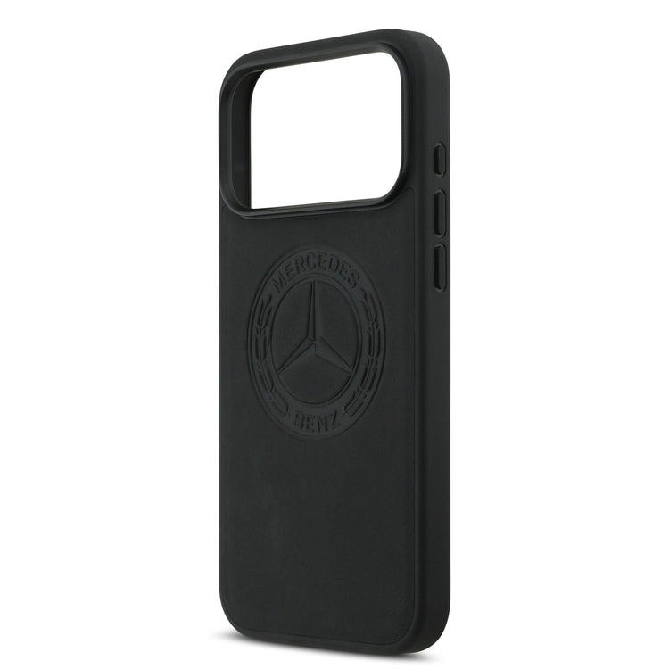 The back features an embossed vintage logo Mercedes-Benz, which highlights the elegant and sporty character of the case.