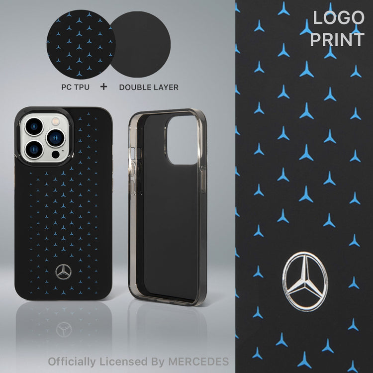 Mercedes-Benz MEHCP14X8UPMTV iPhone 14 Pro Max Transparent Star Pattern Protective Case Blue