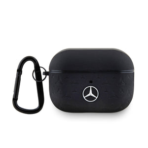 MERCEDES-BENZ - LEATHER AIRPODS CASE WITH DEBOSSED STAR PATTERN - BLACK