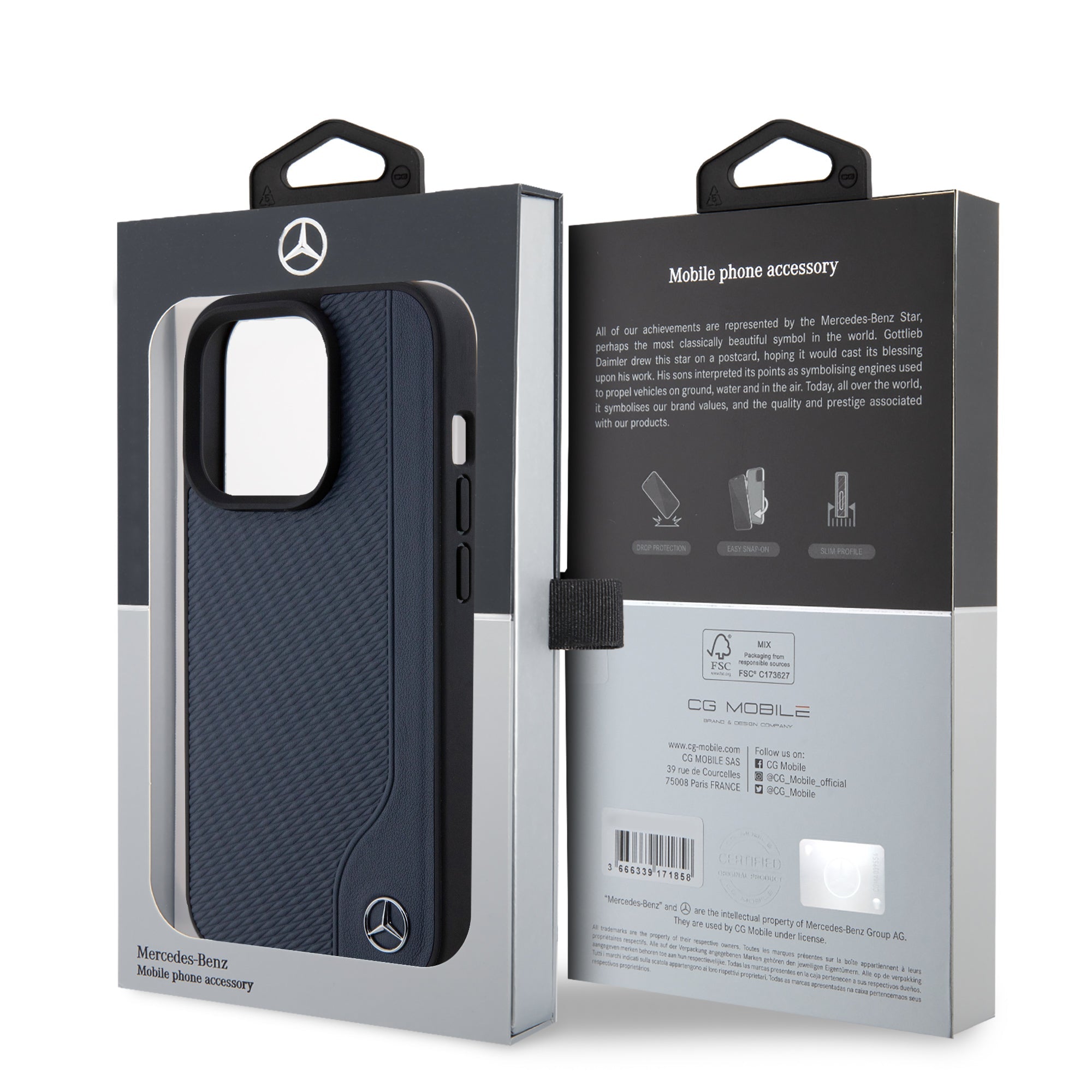 Mercedes MEHMP15L23RBGVV Hardcase MagSafe Wood Imitation Leather Navy for iPhone 15 Pro