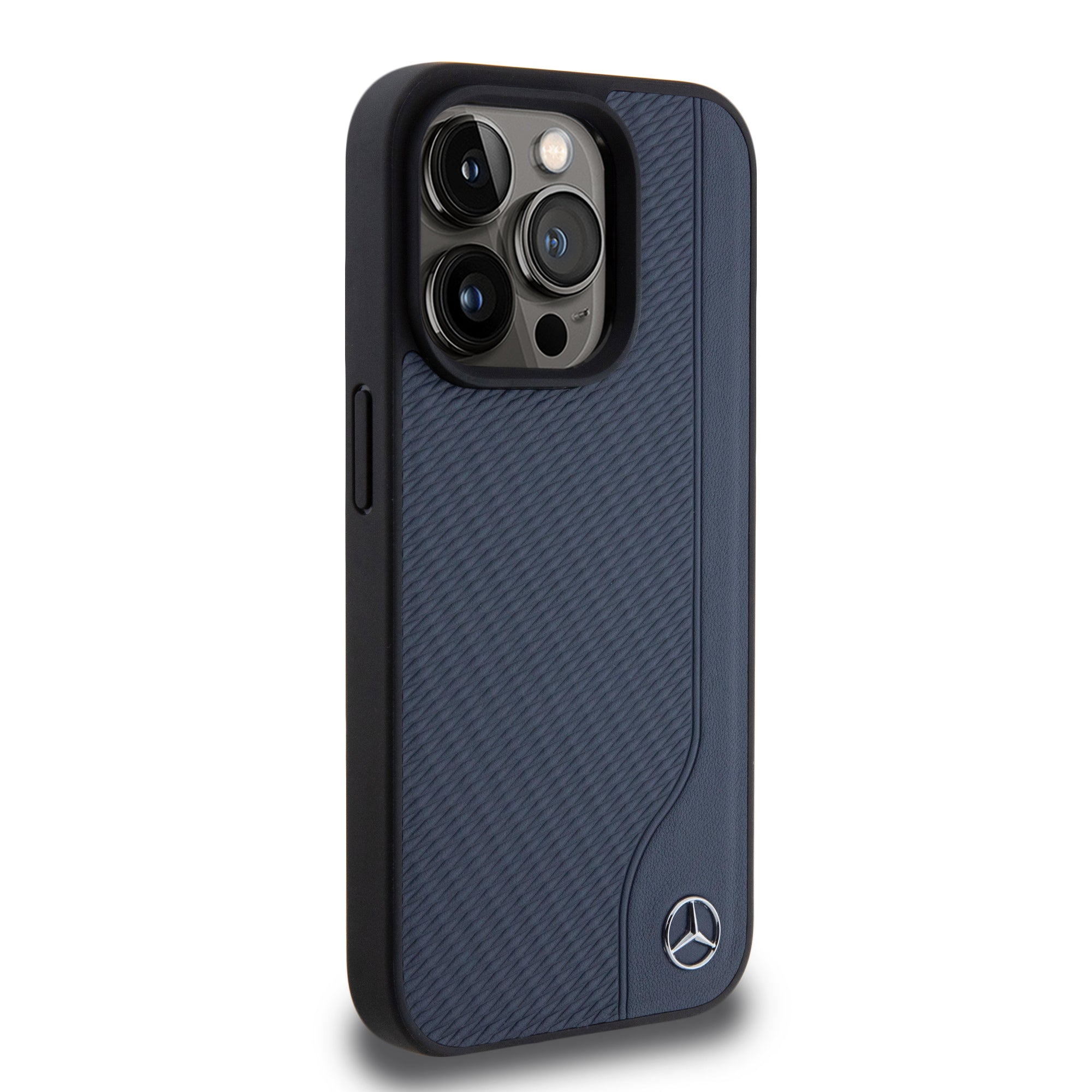 Mercedes MEHMP15X23RBGVV Hardcase MagSafe Wood Imitation Leather Navy for iPhone 15 Pro Max